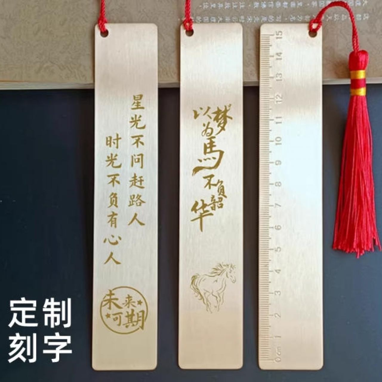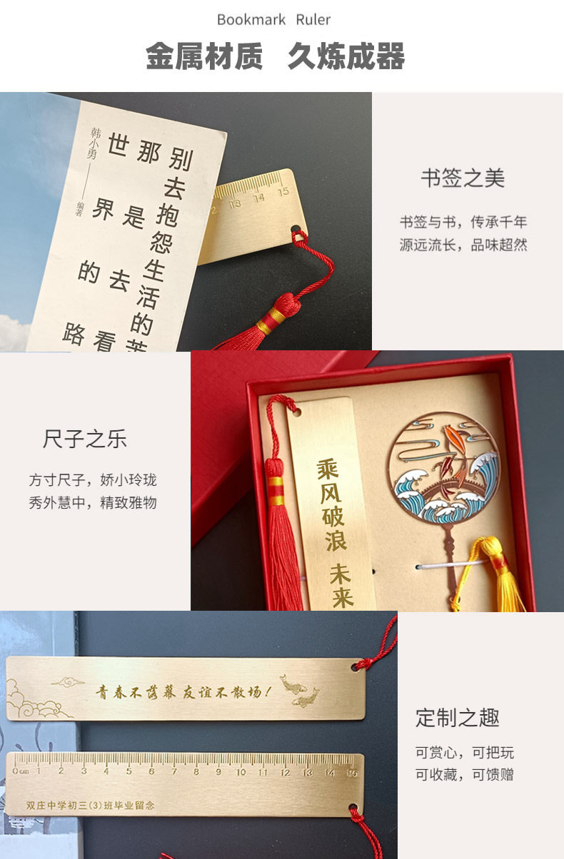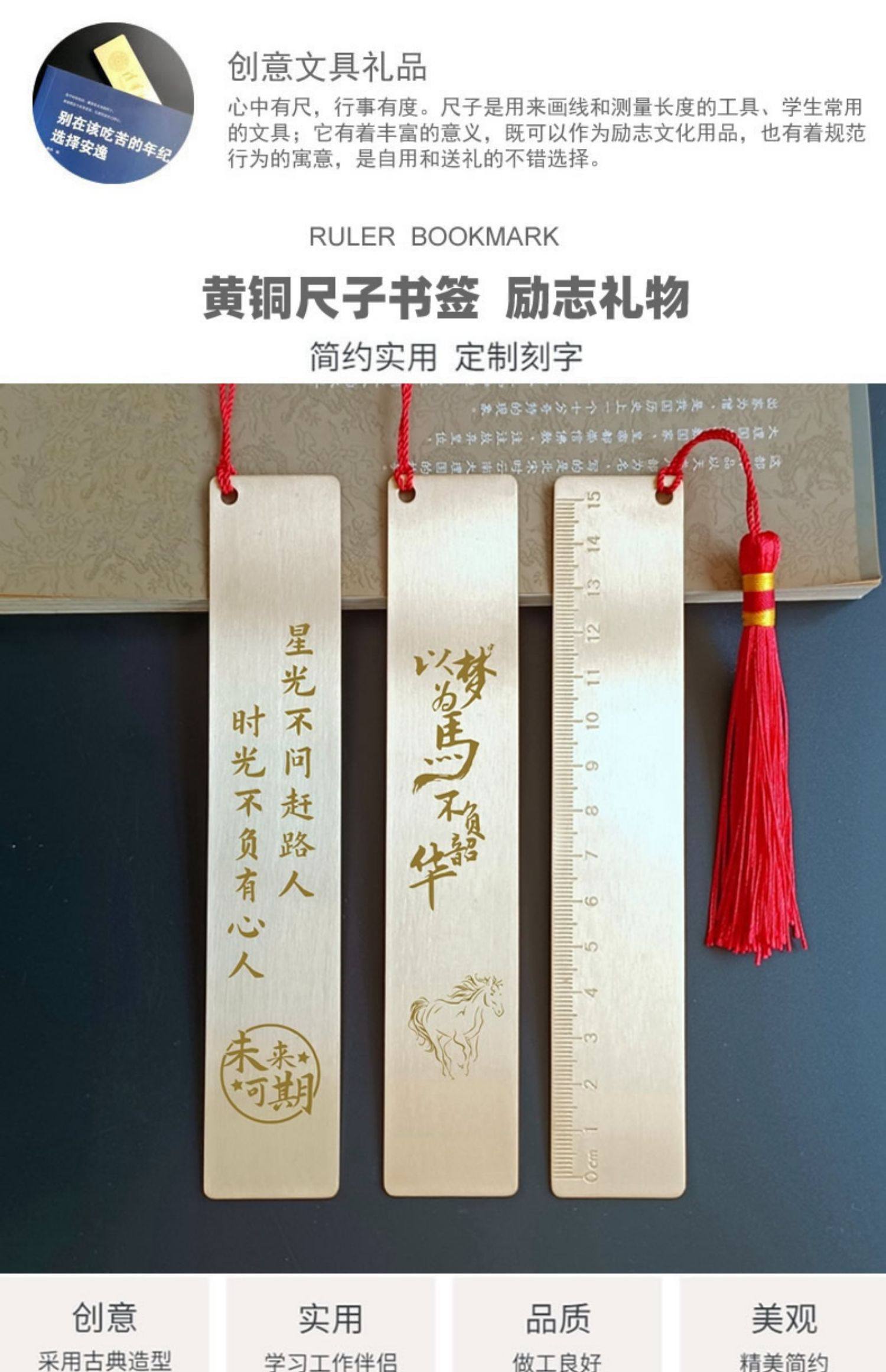 黄铜书签金属直尺定制姓名定做奖励小学生励志奖品