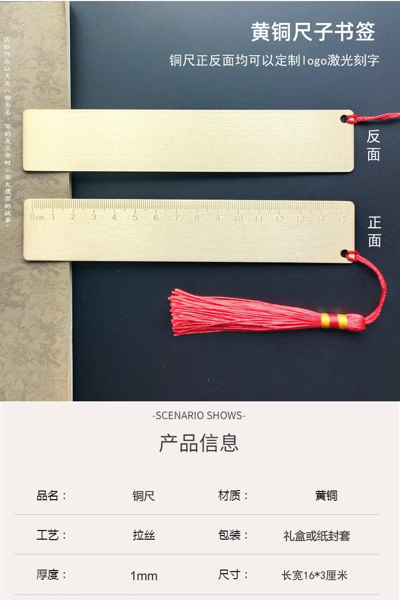 书签定制logo刻字金属黄铜高档精致中国古典风