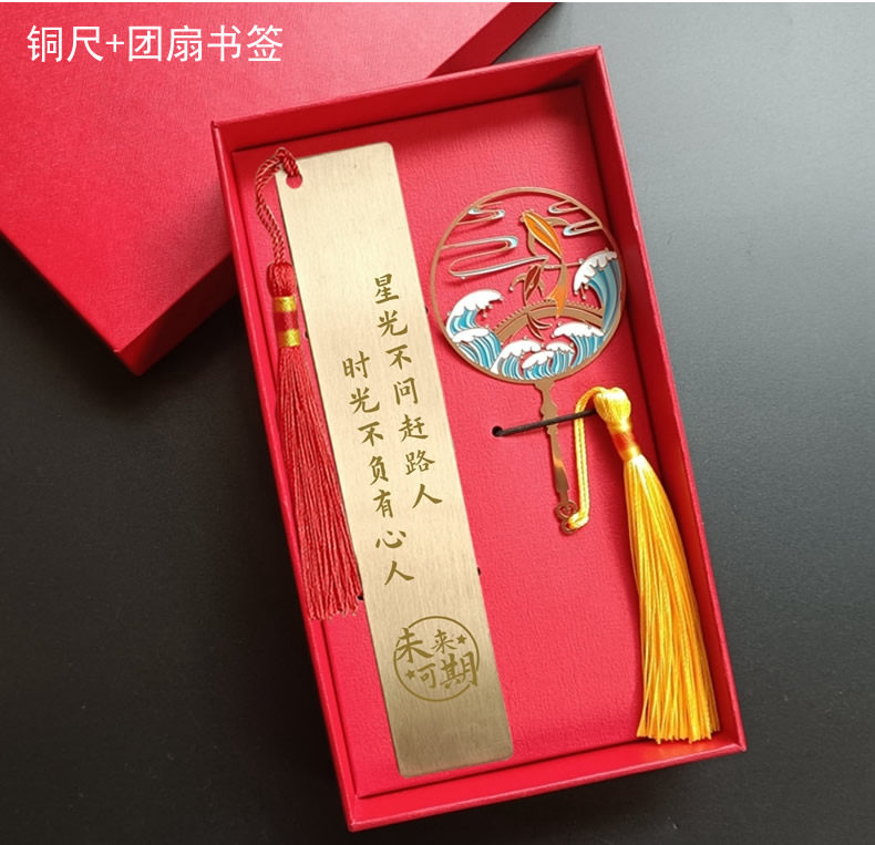 中国风金属镂空书签定制logo学校定做景区文创送礼品套装刻字订制