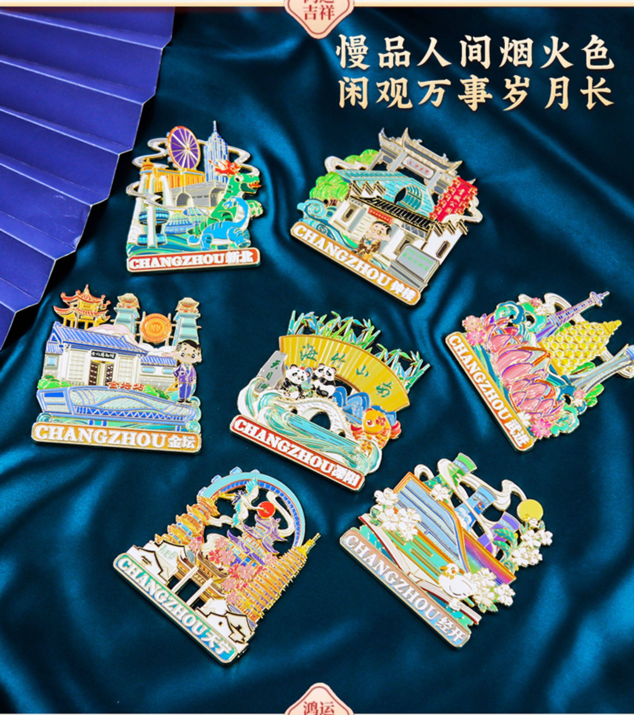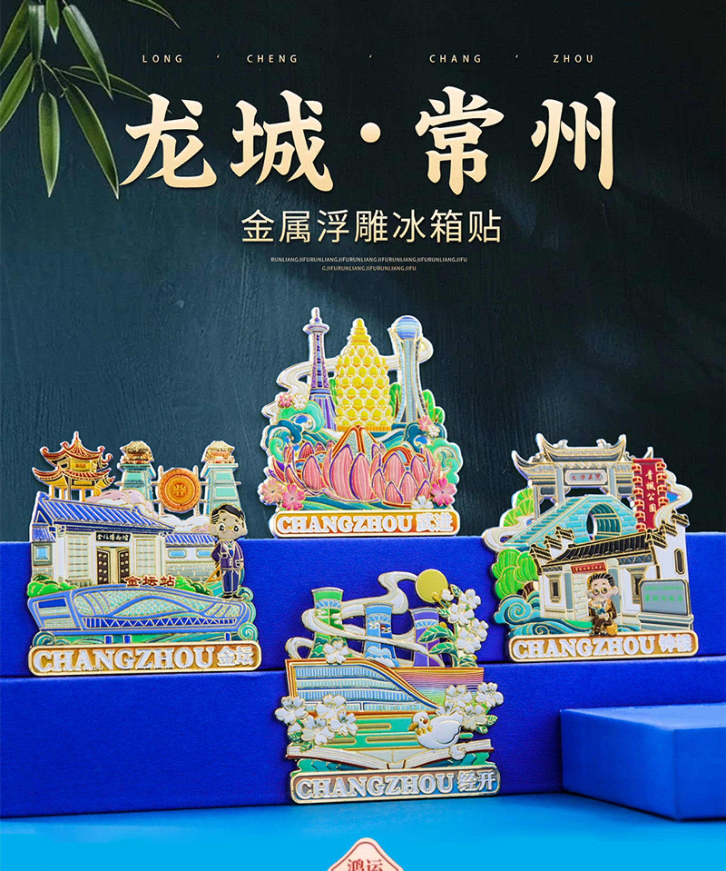 常州龙城青果巷灯光冰箱贴金属磁吸钟楼天宁溧阳城市旅游纪念品