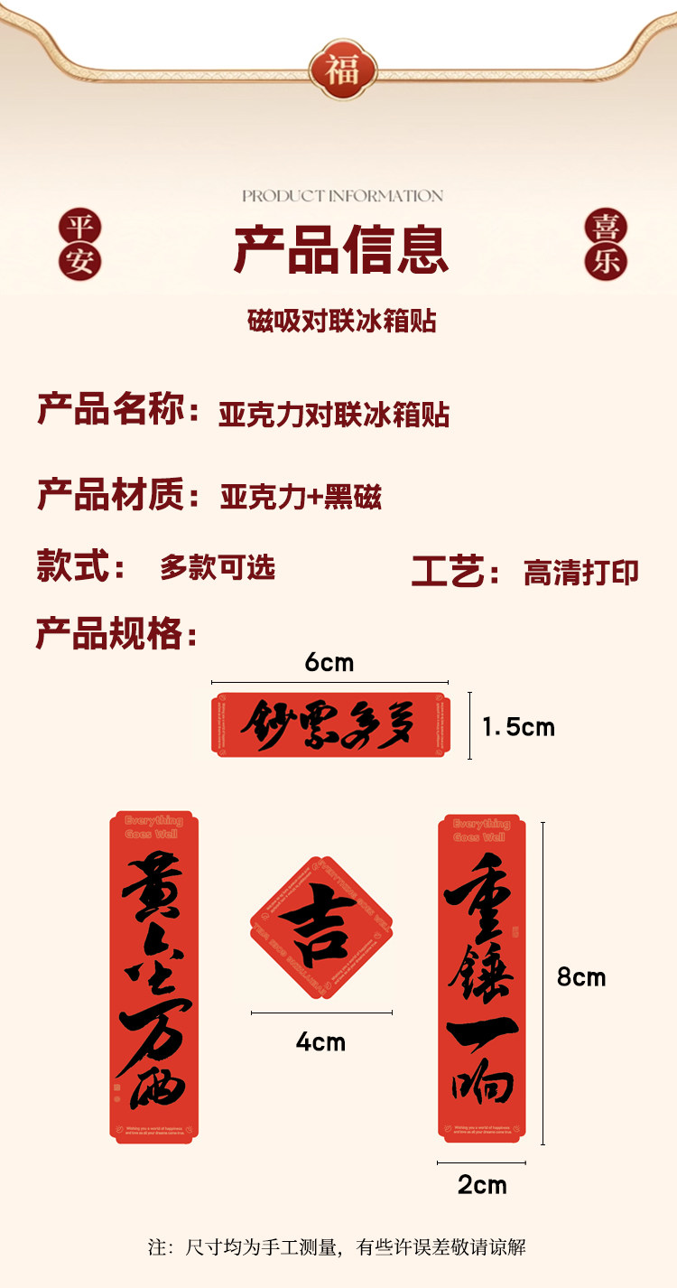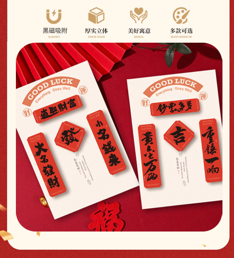 国潮新年磁吸亚克力对联冰箱贴定制定做创意立体卡通装饰春节喜庆