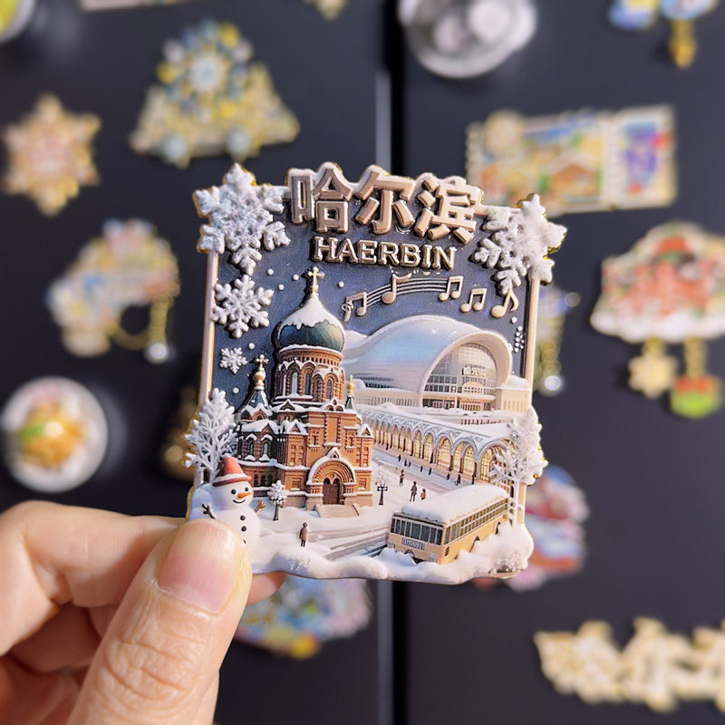 黑龙江哈尔滨漠河伊春东北磁性旅游金属冰箱贴齐齐哈尔雪乡文创