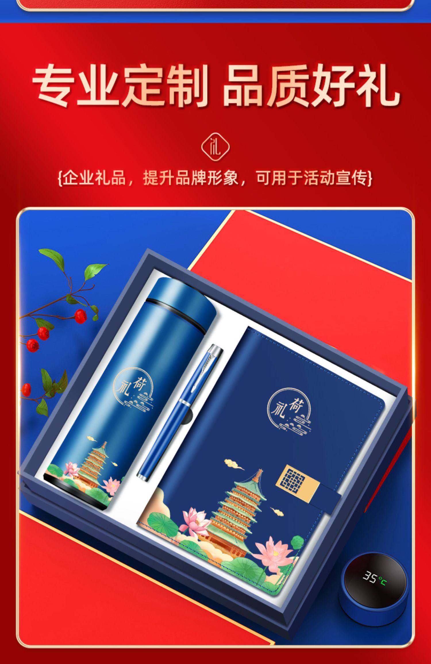 意荷礼国潮办公笔记本子礼品套装商务礼盒装