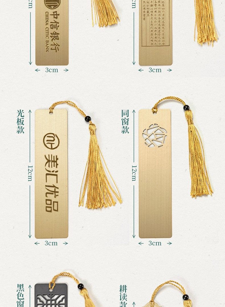 书签定制logo刻字金属黄铜高档精致中国古典风