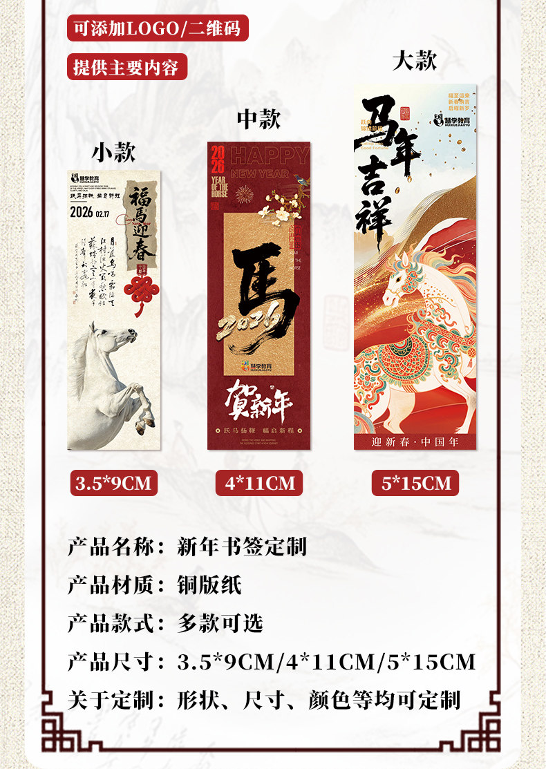 马年书签定制新年中国古风周边来图订做文创产品纸质diy制作