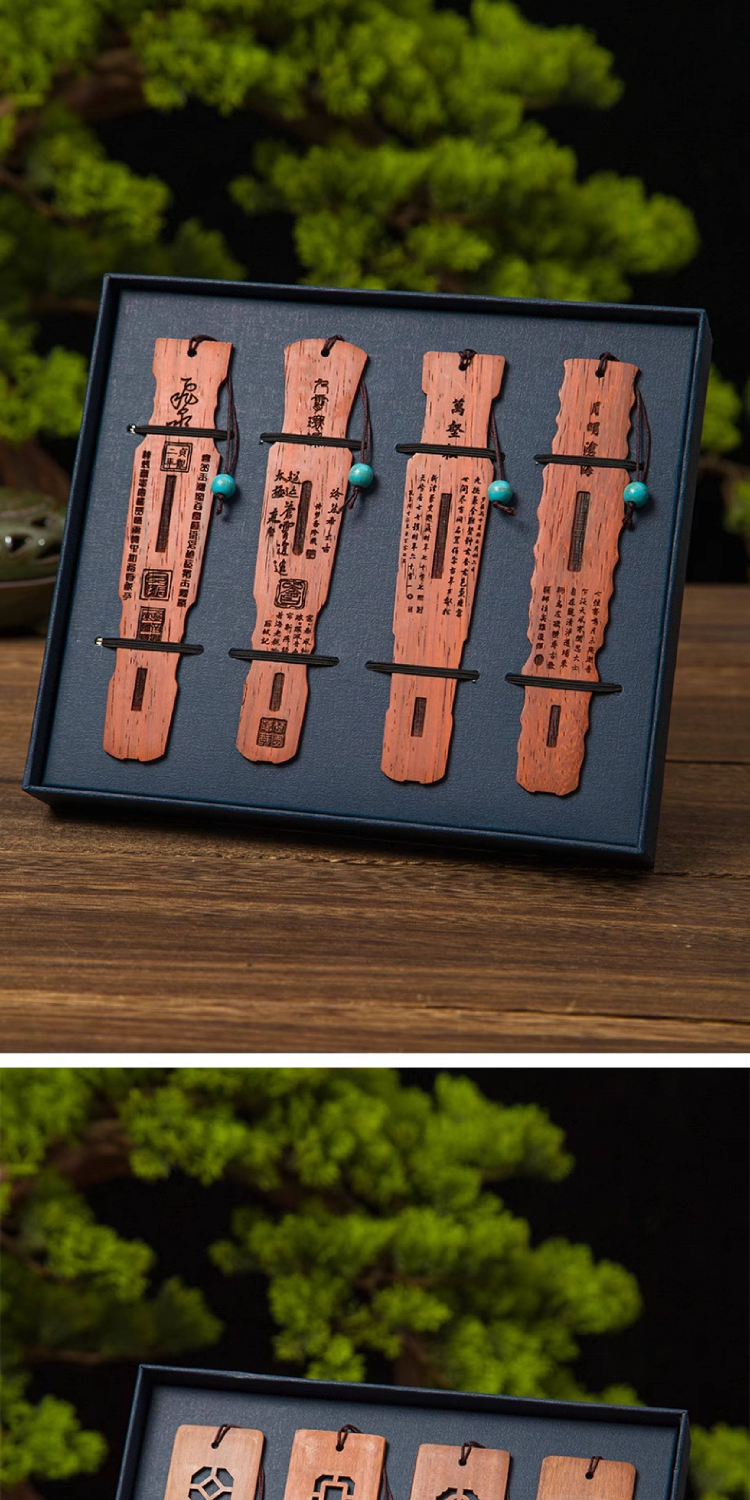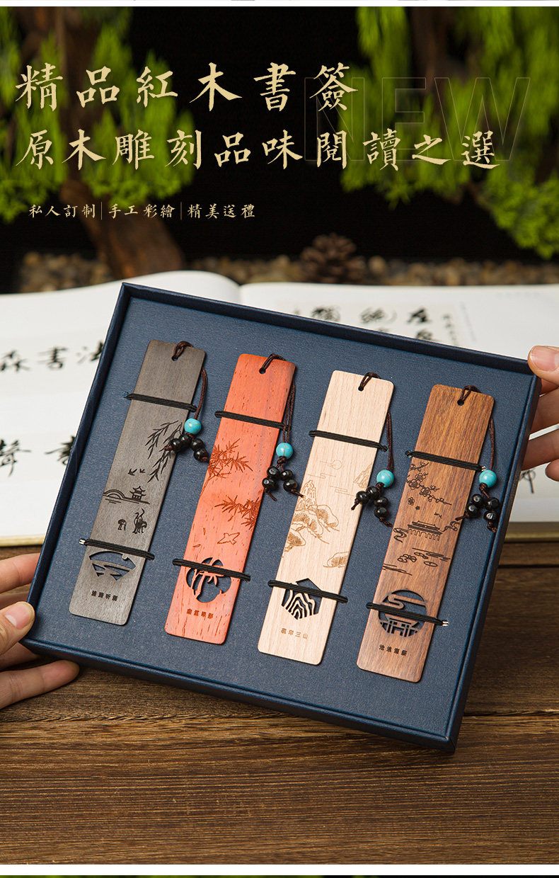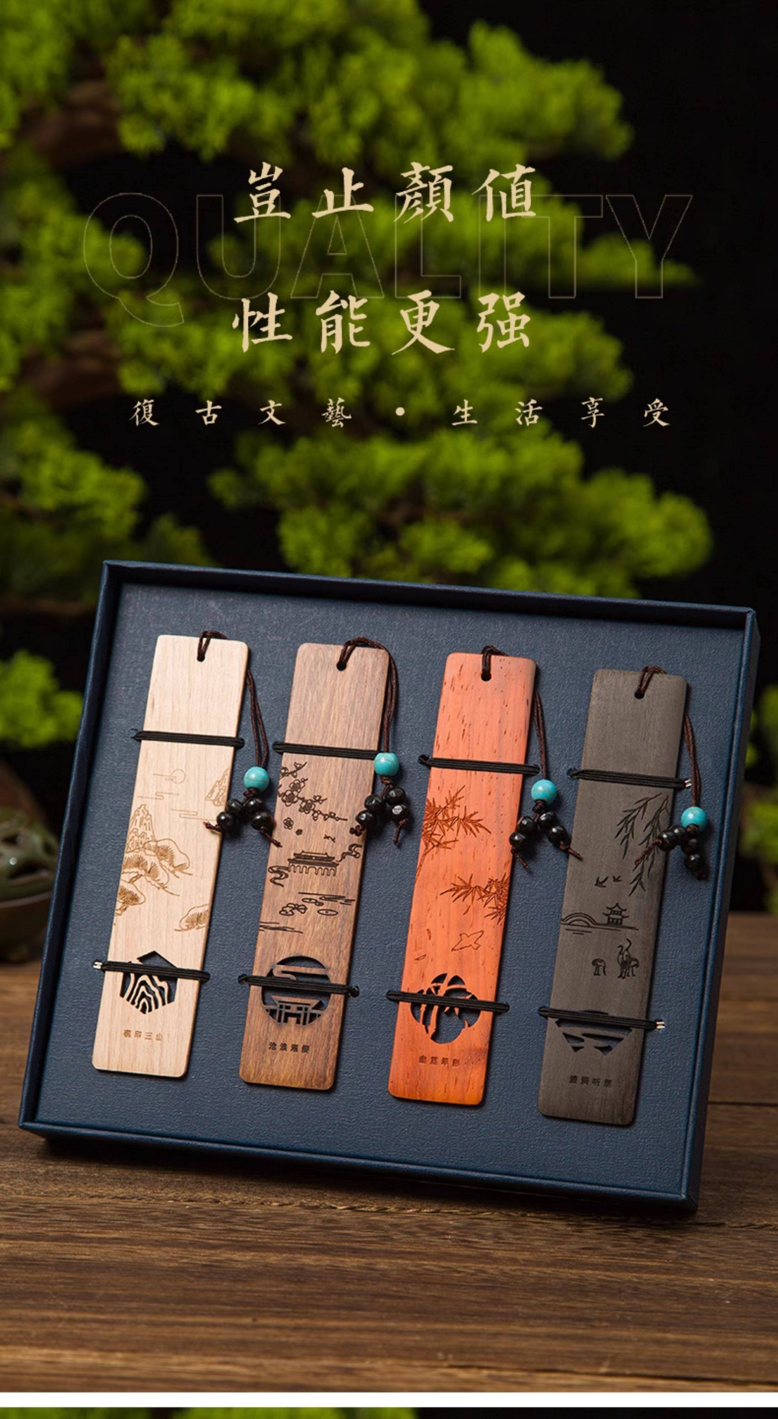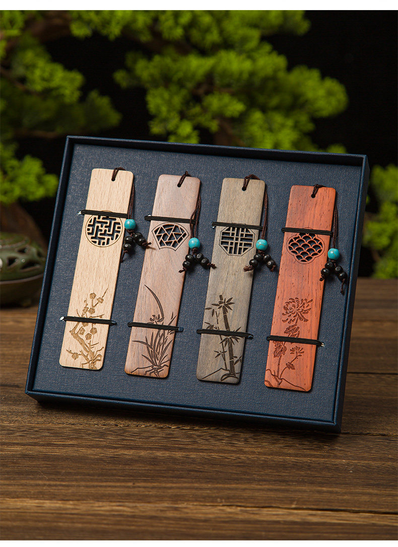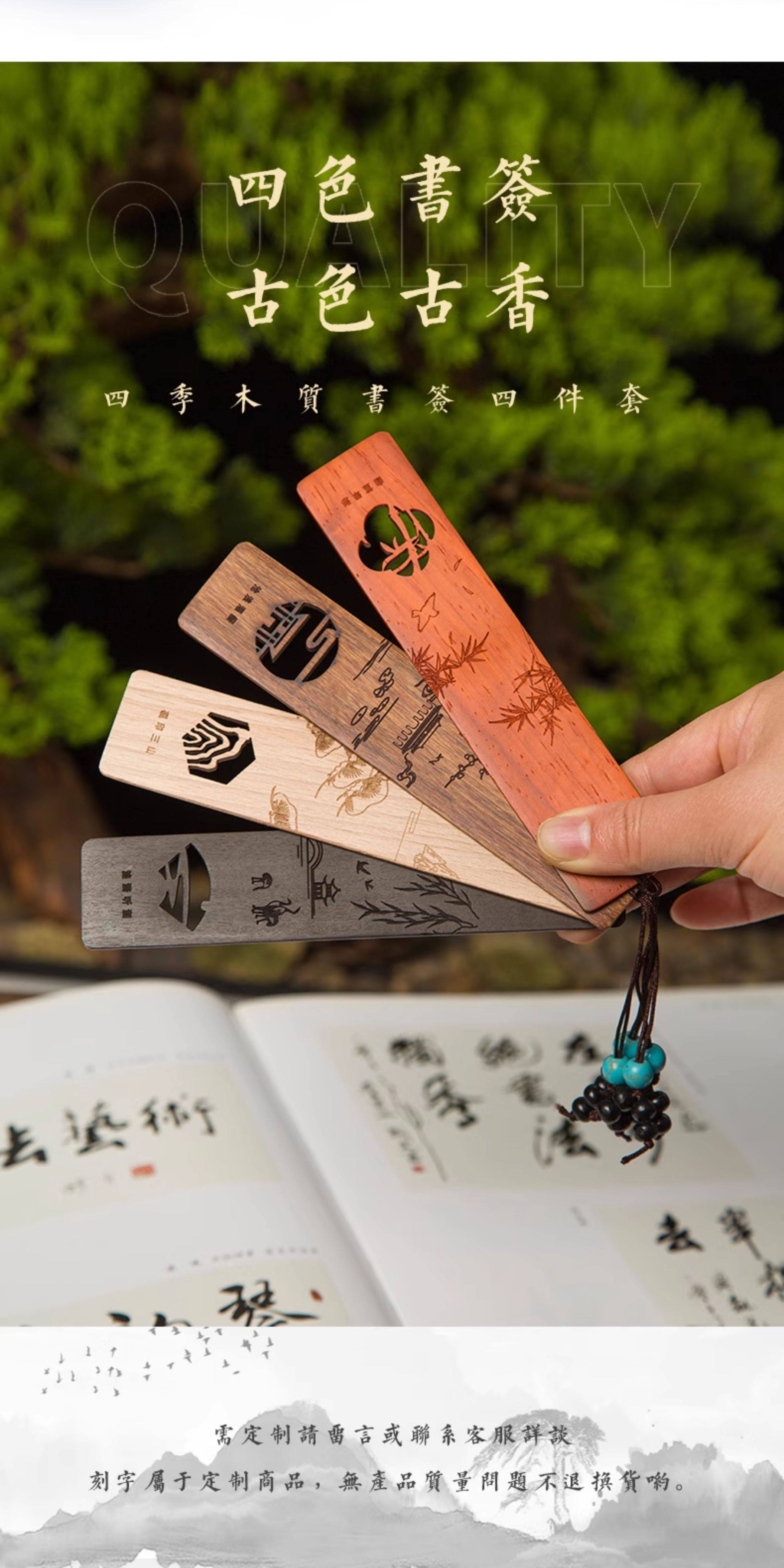 新年礼物木质梅兰竹菊熊猫书签古典定制刻字金属高档精致礼盒故宫文创创意特色礼品