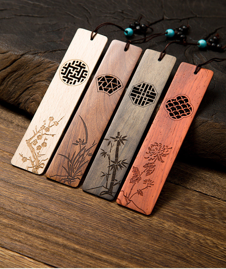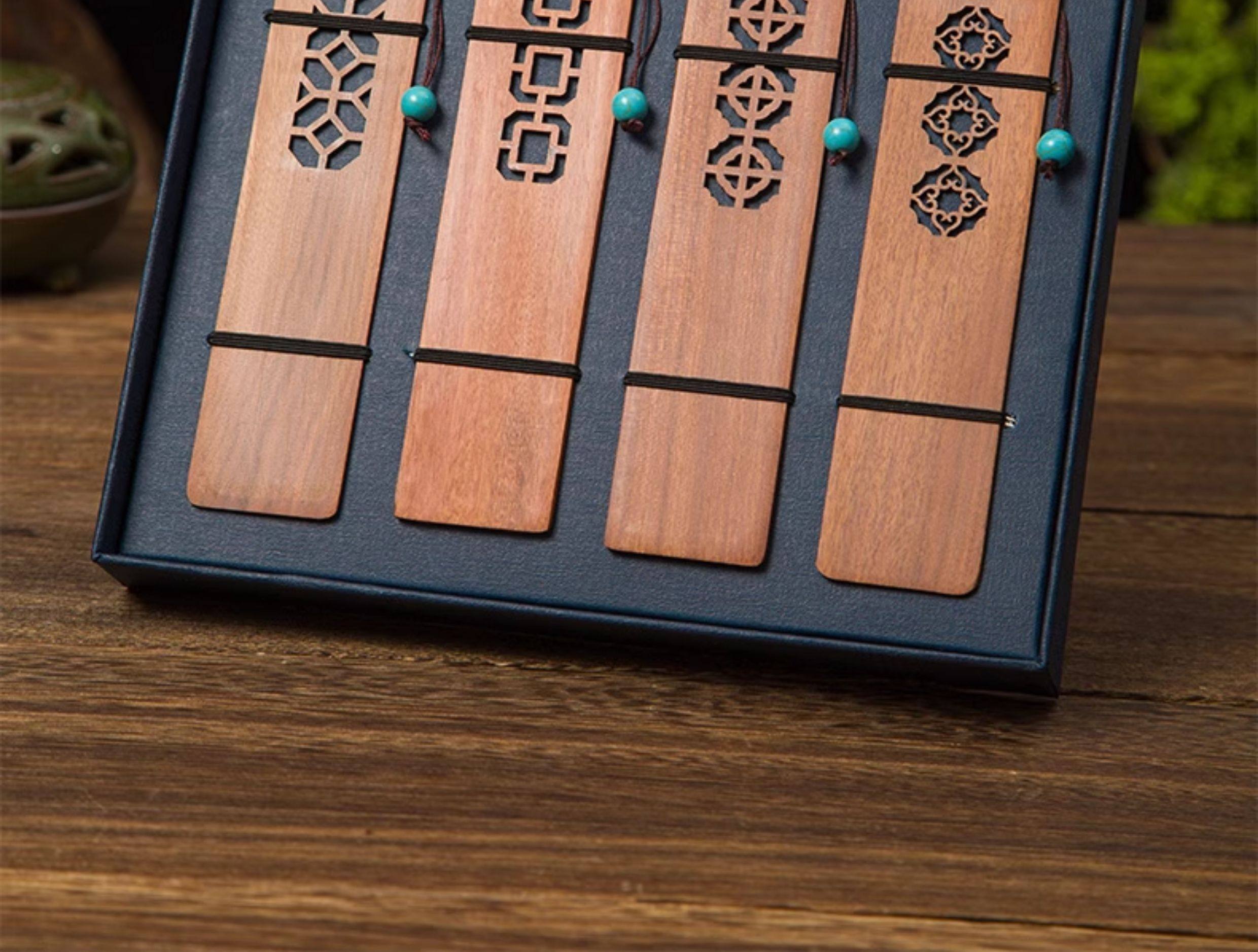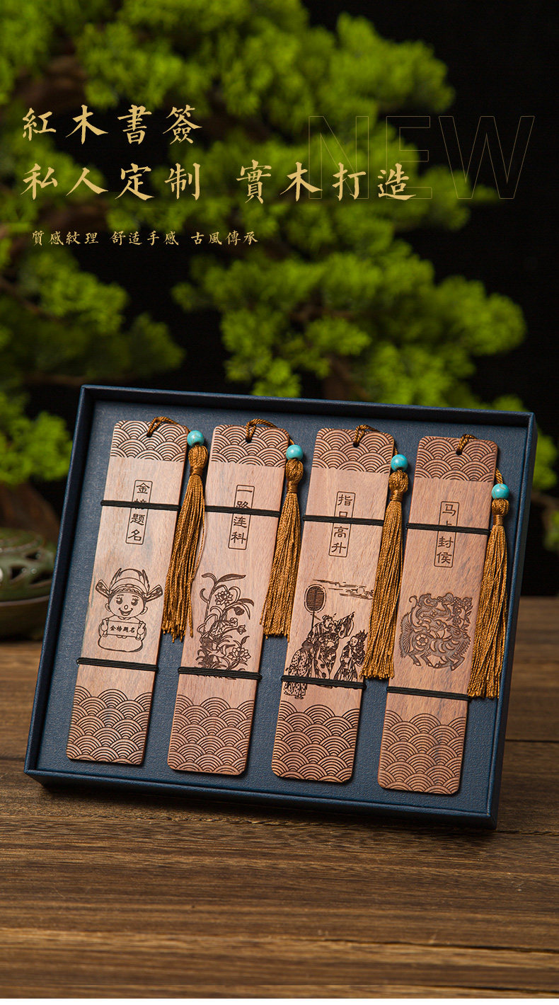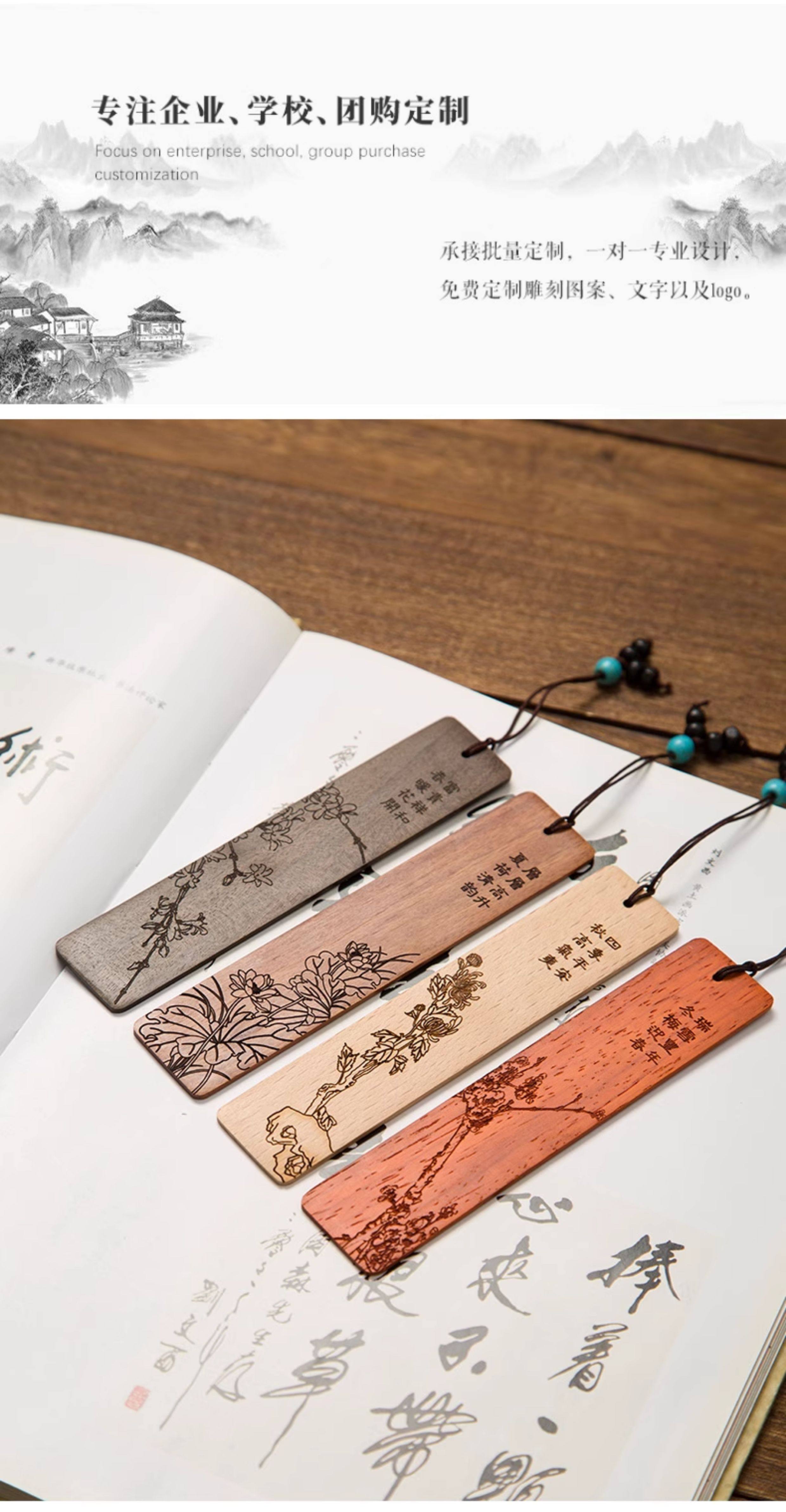 新年礼物木质梅兰竹菊熊猫书签古典定制刻字金属高档精致礼盒故宫文创创意特色礼品