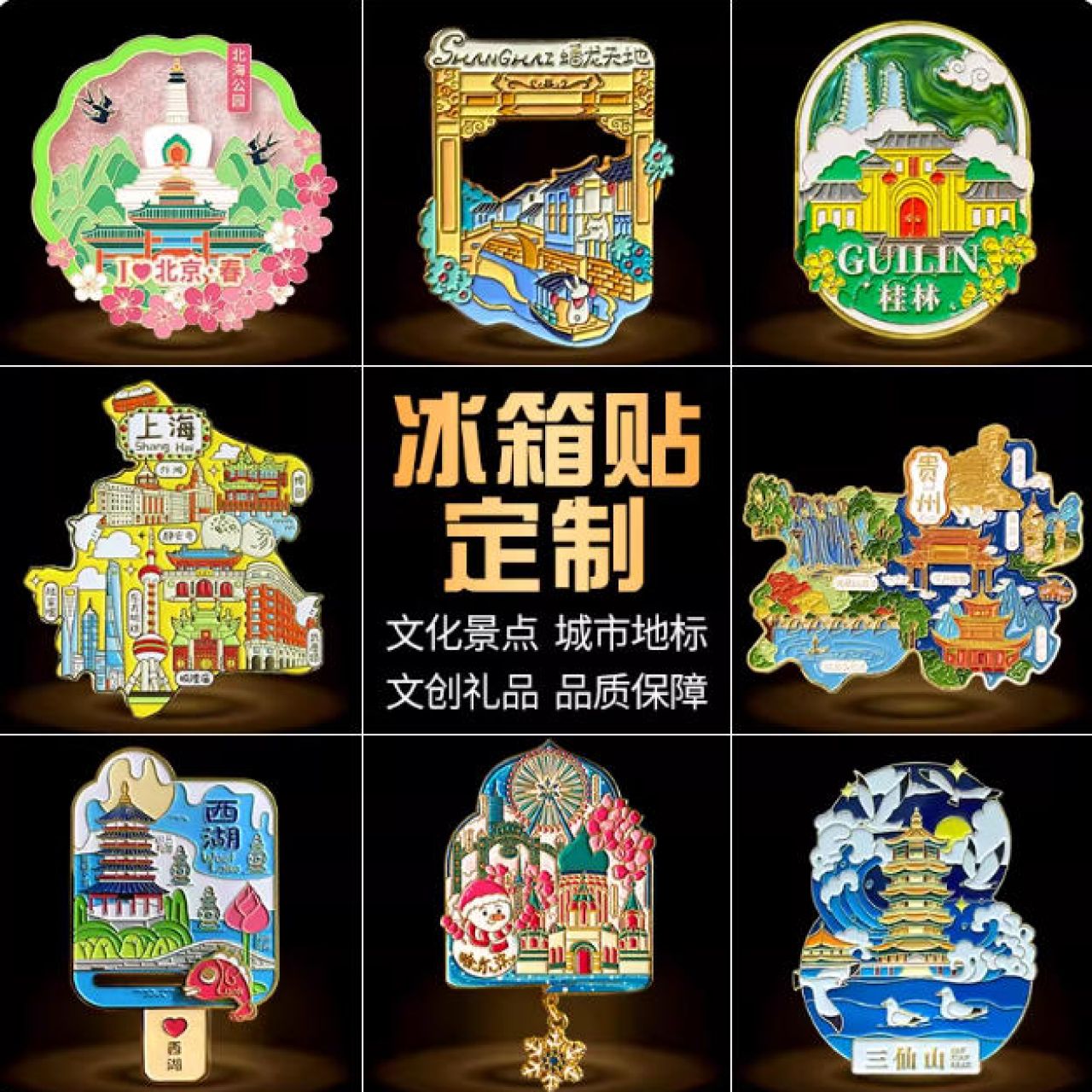 金属冰箱贴定制景区建筑文创礼品定做企业logo周年纪念磁吸贴订制