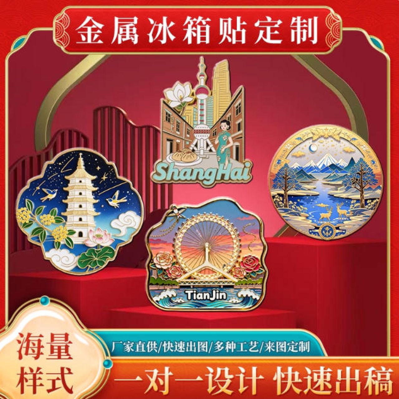 金属冰箱贴定制景区建筑文创礼品定做企业logo周年纪念磁吸贴订制