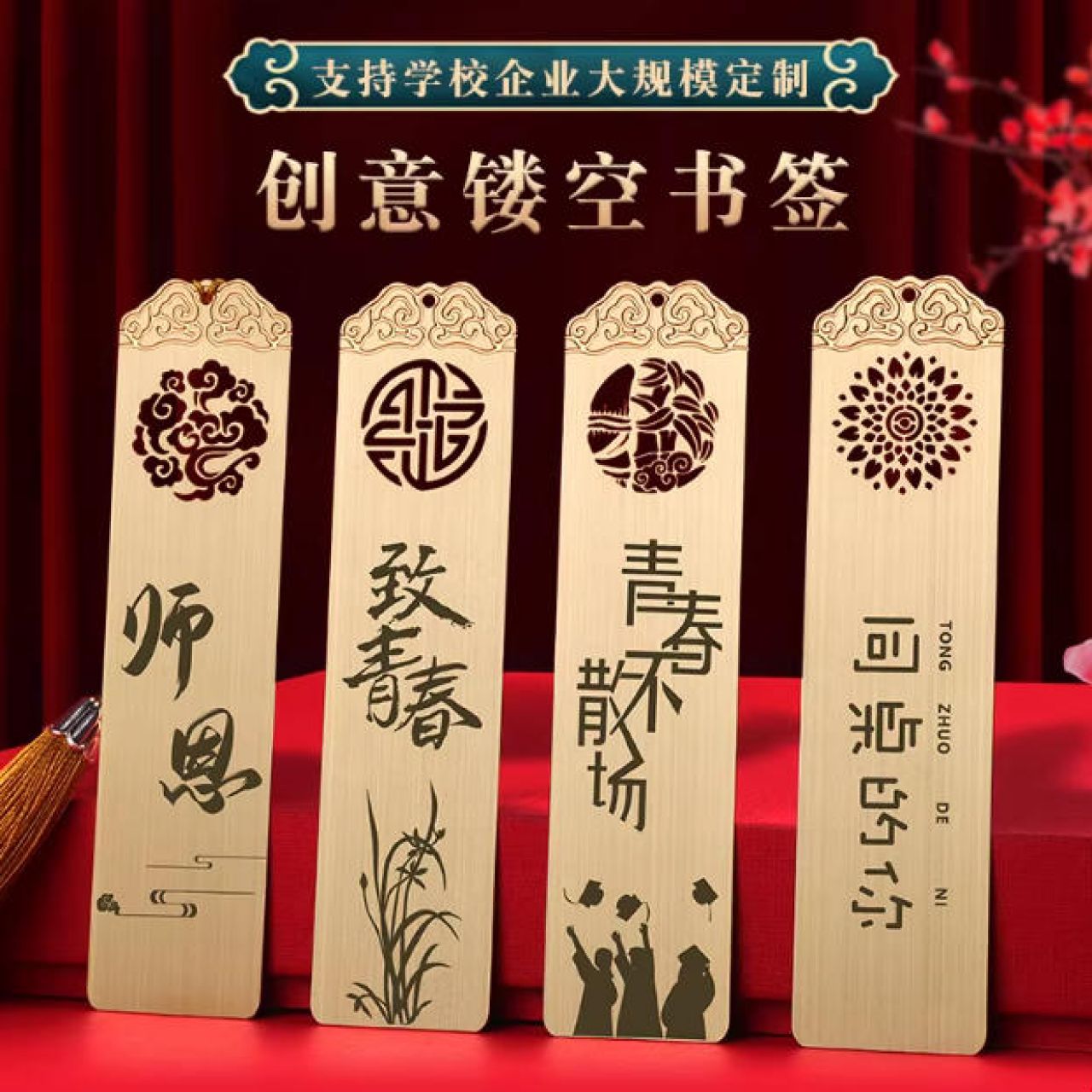 中国风金属镂空书签定制logo学校定做景区文创送礼品套装刻字订制